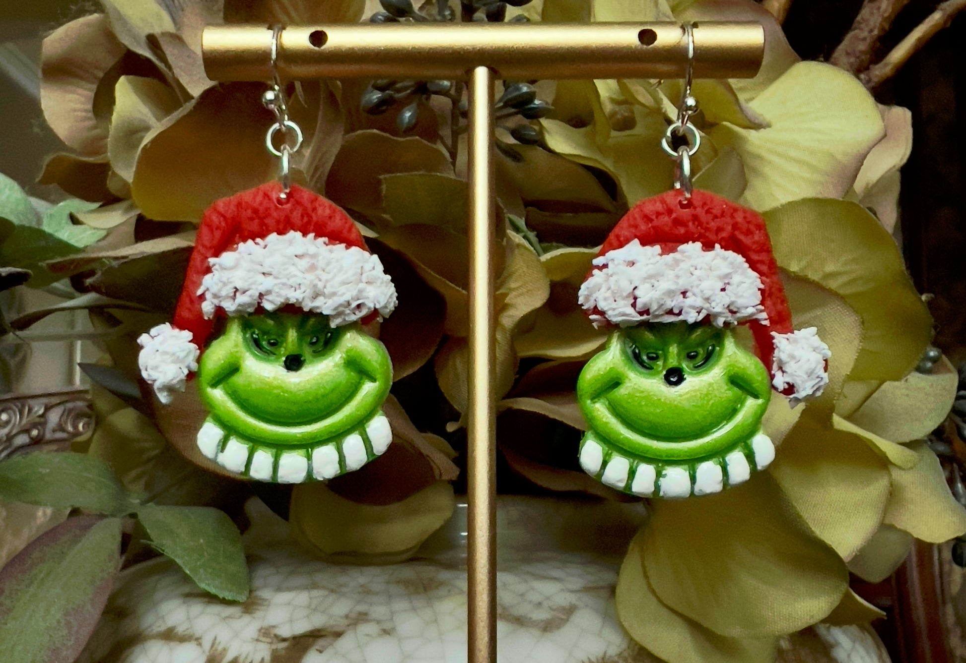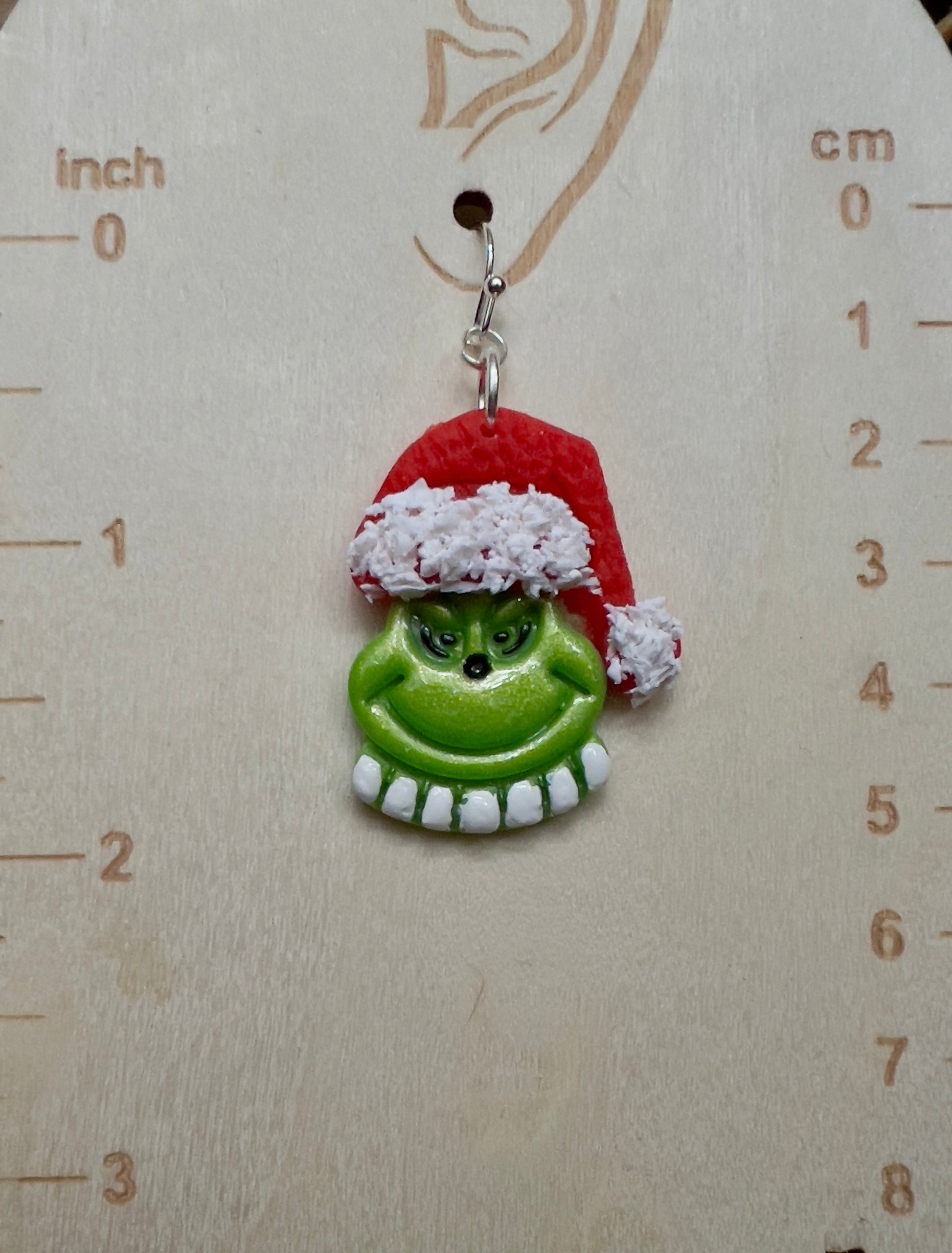 The Grinch wearing a Santa hat. Hypoallergenic hooks